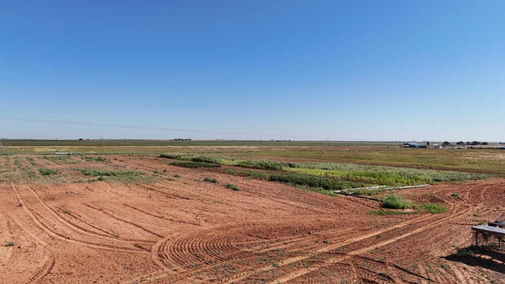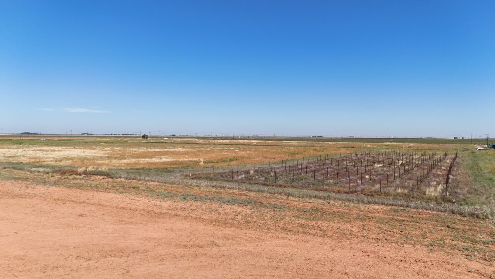 The land is made up of a wide variety of soil types, and is generally flat throughout. Acuff loam is the most common, covering about 43% of the place (56.4 acres). Pep loam covers another 31% or so (41.2 acres). Portales loam, Lofton clay loam, Chapel clay, and Olton clay loam can also be found on the farm. The majority of the tract has slopes from 0-1%, with slopes up to 3% being found in small areas as well.