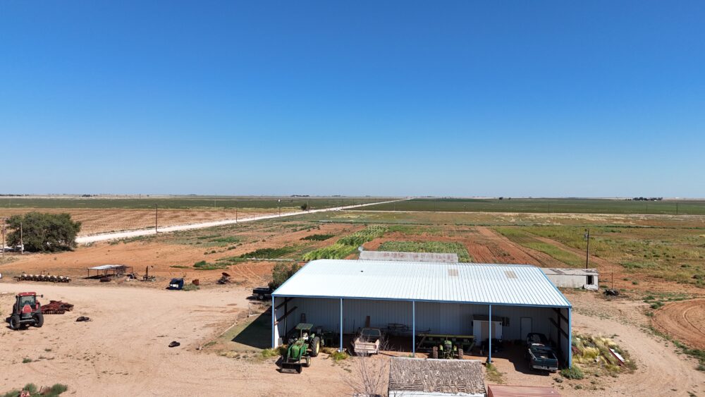 Aside from the wells, there are a number of other improvements to speak of. Specifically, the farm has a finished out 40×80’ shop with a 20×80’ lean to on the outside of it. Half of said barn has heating, air conditioning, is finished out, and is used as office space. The other half houses equipment and other tools. Additionally, another shed is located just North of the primary barn and while it needs some work (specifically on the roof), can still be used to house equipment well into the future. A small house sits near the main entry onto the property. The house has previously been rented out to residential tenants, but does need extensive work. There is a cotton gin inside the barn that will NOT convey with the sale and will be removed prior to closing.